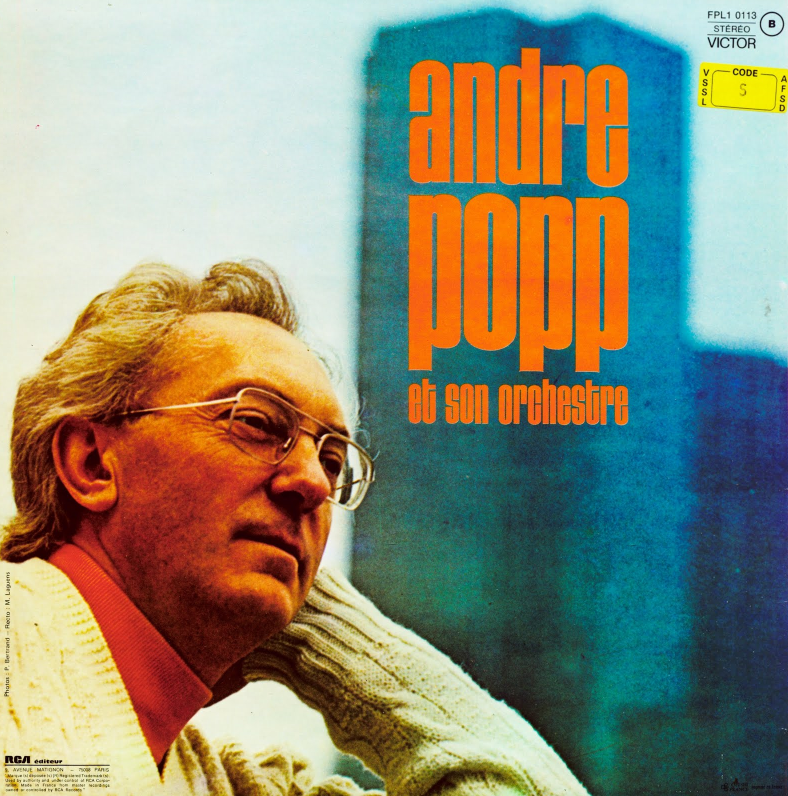 Like so many of his colleagues in the arranging business in France, André Popp released an impressive number of instrumental albums, such as ‘Popppp!’ (1960), the critically acclaimed ‘Holiday for DJs’ (1963), ‘Popp around the world’ (1965), and ‘Hot shot’ (1976). The most striking of these albums, however, doubtlessly is ‘Delirium in Hi-Fi’, which Popp released under the pseudonym Elsa Popping. It was a project in which the possibilities of the recording technique of the day were stretched to their delirious limits. The production won Popp the Grand Prix Académie Charles Cros.