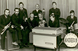 Peeter Lilje seated at the Weltmeister clavinet with pop group Credo (1972)